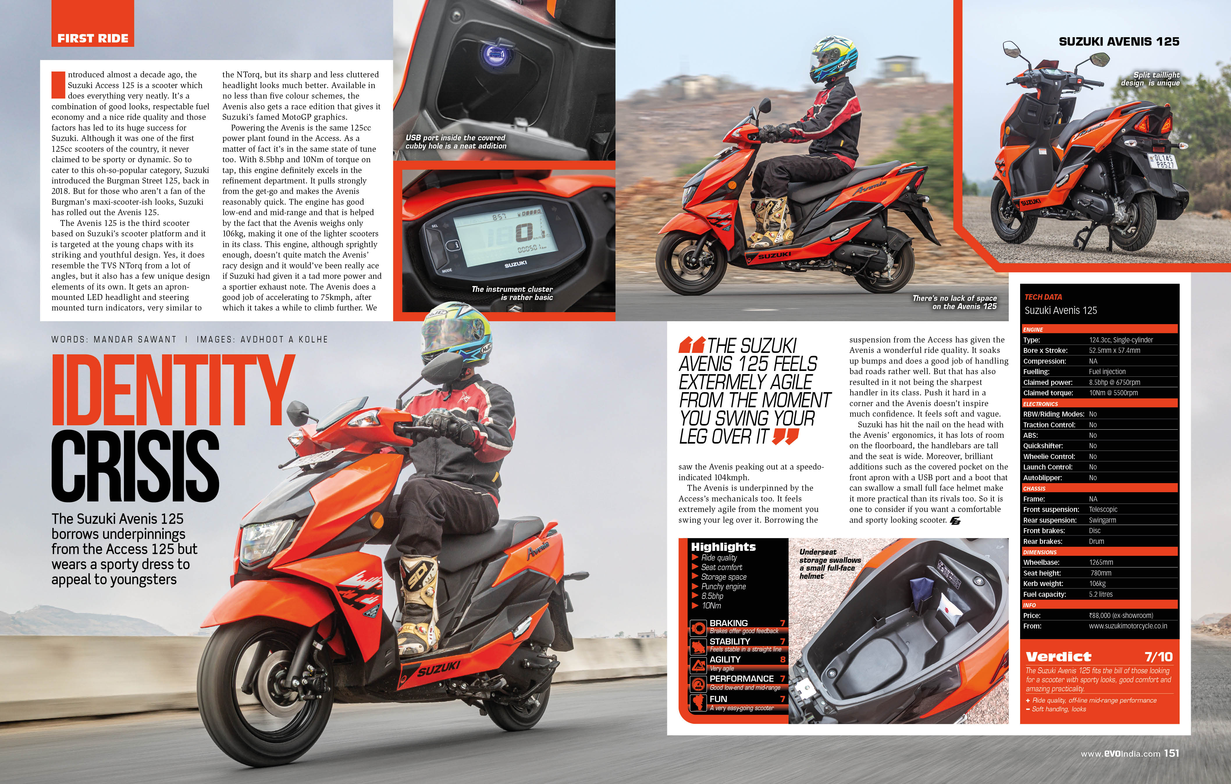 Can the sporty Suzuki Access 125 dethrone the TVS Ntorq 125?The Suzuki Avenis is underpinned on the Access 125’s platform, but it looks far sportier. It rivals the likes of the TVS NTorq and the Yamaha RayZR, and is a sporty looking scoot that doesn’t compromise on comfort in any way and remains just as practical as a hardcore commuter.