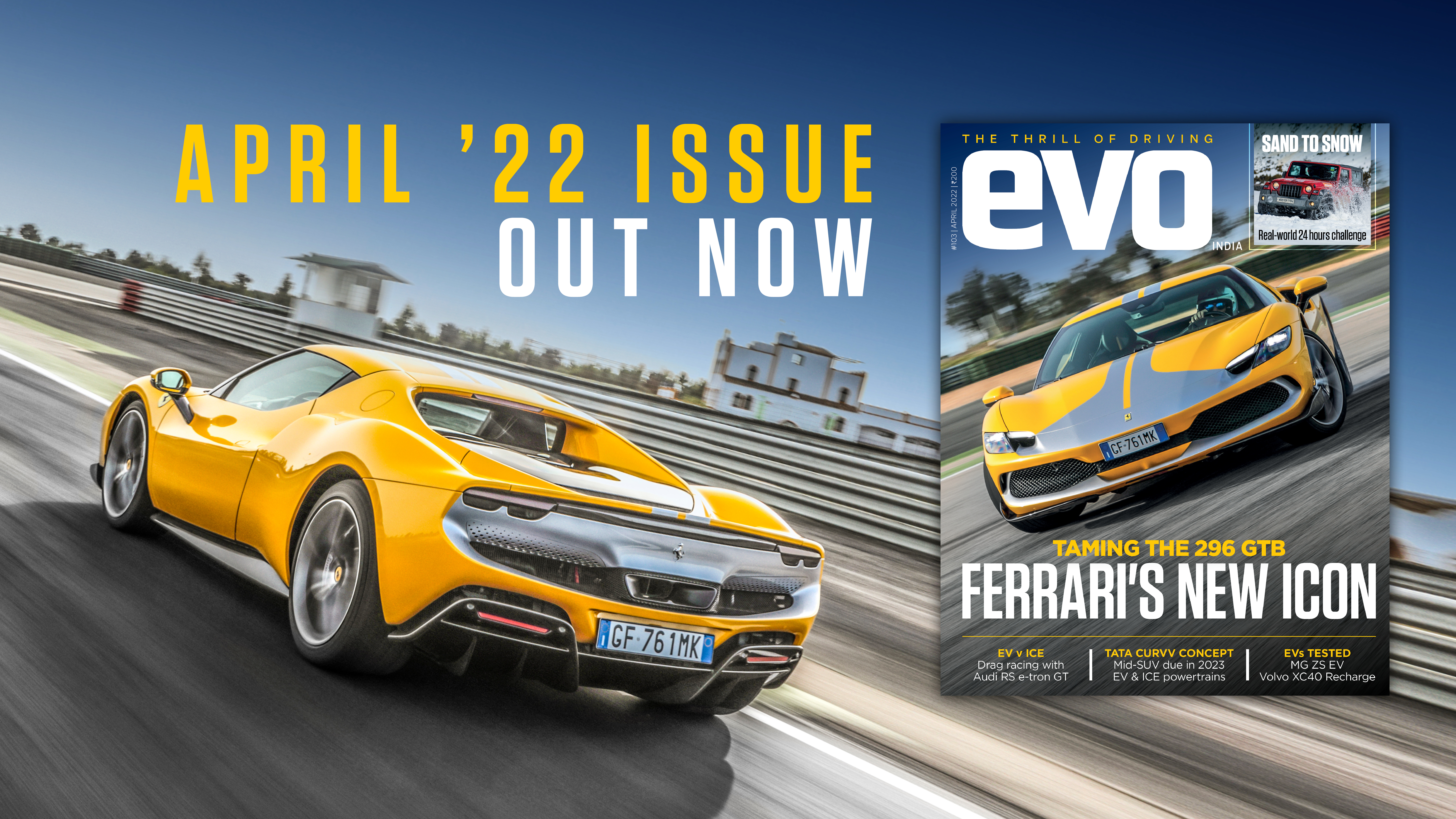 Ferrari's 296 GTB headlines the April 2022 issue of evo IndiaIndia-exclusive test drive of the Ferrari 296 GTB headlines the April 2022 issue. This is a landmark sports car for Ferrari — the first ever prancing horse road car with a V6 engine, the most powerful rear-wheel-drive sports car in the world, and with the hybrid boost it also has the highest specific output of any powertrain in the world. The 296 still makes an eye-watering 819bhp and 740Nm, all while being able to drive at speeds of up to 135kmph in electric-only mode. And the wheelbase has been shortened with the goal to make it the most fun to drive in its segment. A blast through the brilliant Spanish countryside and a very sideways track session with an Assetto Fiorano-spec 296 reveals an absolutely astonishing sports car that redefines Fun to Drive.