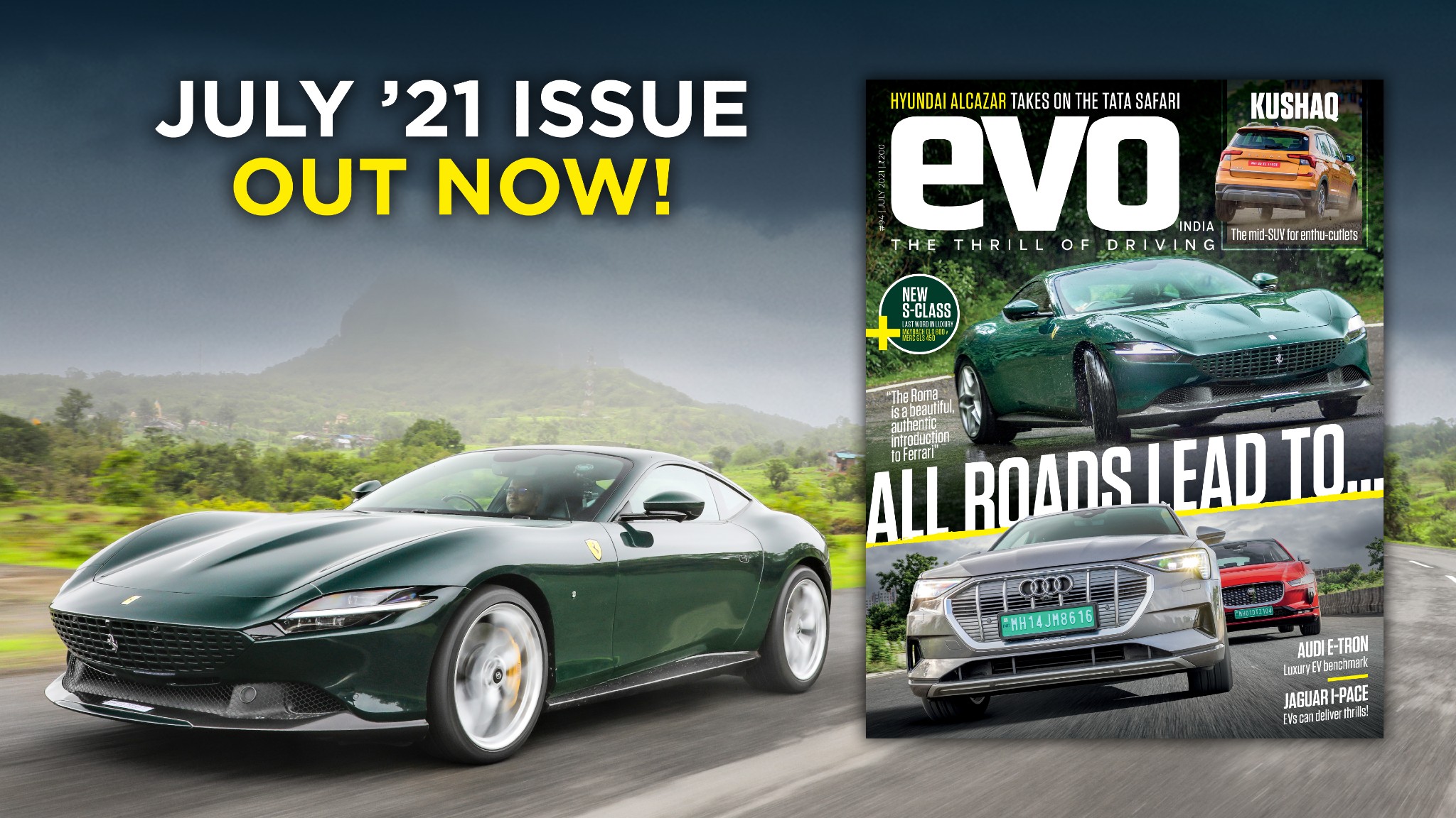 Ferrari Roma, Audi e-tron, Skoda Kushaq and the new Mercedes-Benz S-Class in the July 2021 issue of evo India