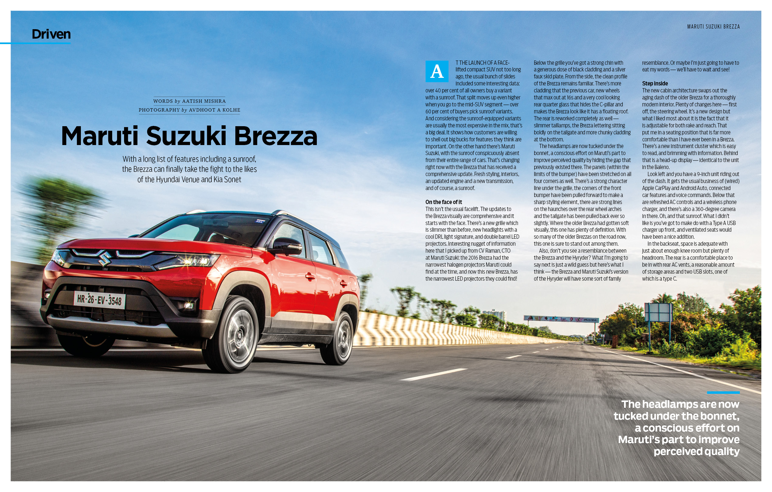The Brezza gets its first serious upgrade six years after its launchAnother sub-4m SUV with an update! The Maruti Suzuki gets a name change — dropping the Vitara moniker — but with it, it gets updated styling, a modernised dash, a slew of new features including the in-demand sunroof, and an updated drivetrain with the new K15C engine and 6-speed automatic transmission. Prices have also increased, making the top-end Brezza one of the more expensive cars in this class.