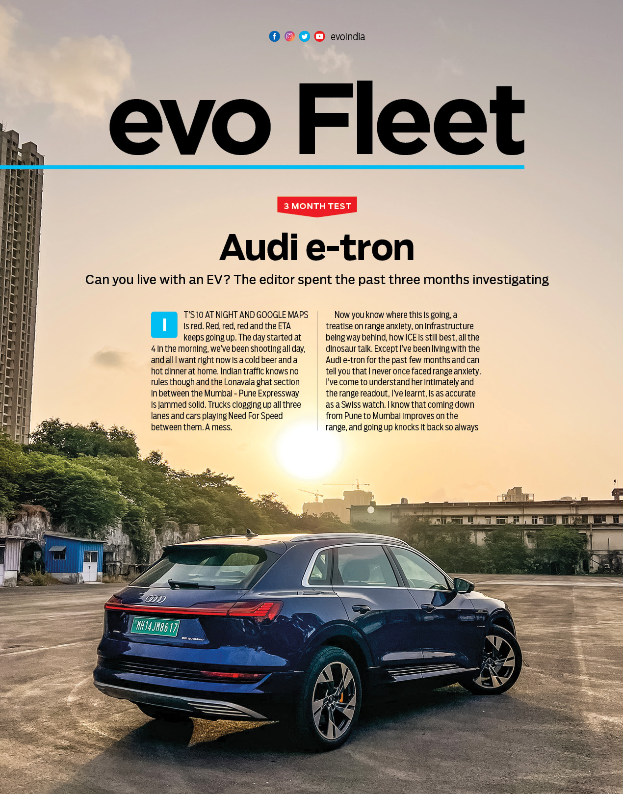 Read how the Audi e-tron fared as the Editor's daily driverCan you live with an EV? That’s the task the editor set himself, spending the last couple of longish with the Audi e-tron full electric SUV. Not only did he use it as his daily driver but also as a support car on all our shoots, on multiple Pune - Mumbai - Pune runs and much more. Read the issue to find out why he’s convinced the time for EVs is here.