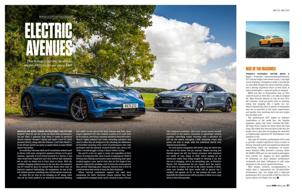 EVs have become proper stuff, and we play with the best of themOur cover story was all about finding out which the best AWD sports car is. It’s no secret that electric cars have become extremely competent over the years and scarily fast as well. So, why didn’t we include EVs in our AWD story? Read this story to find out.
