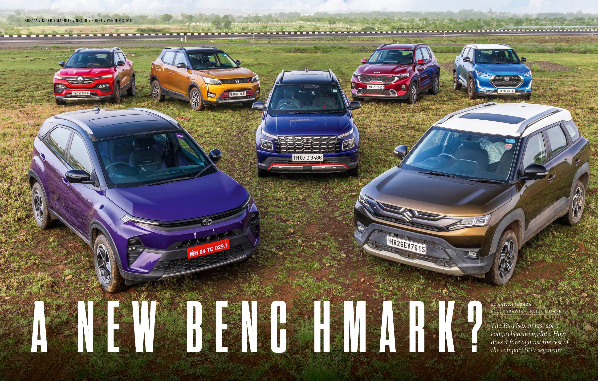 The Tata Nexon has been given a major rejig with all-new styling, more features and a new gearbox. We test it against the Maruti Suzuki Brezza, Hyundai Venue N Line, Mahindra XUV300 TurboSport, Kia Sonet, Renault Kiger and Nissan Magnite to see if it still is the king of this lot.