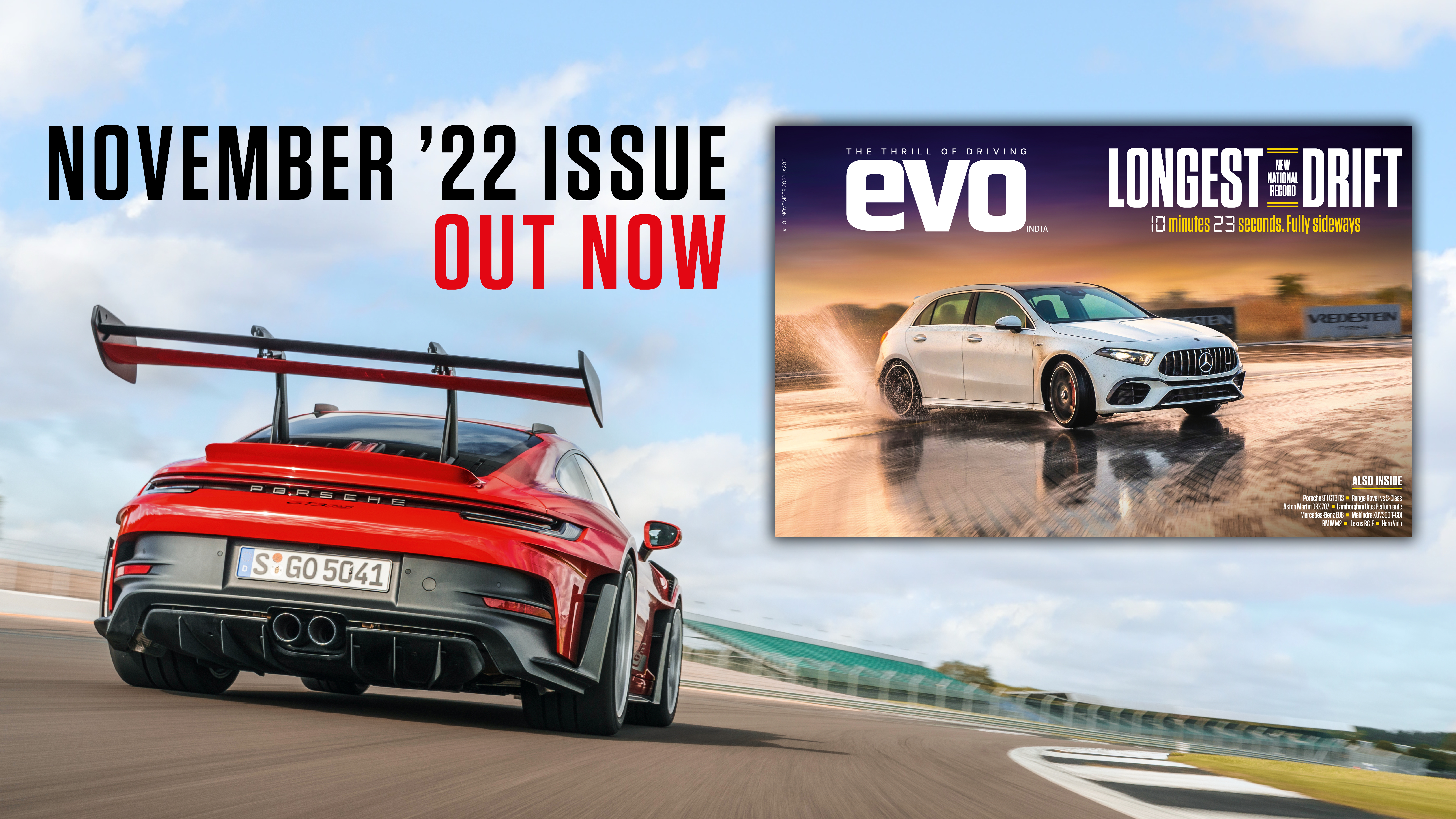 evo India sets the Indian national record for the longest drift with the Mercedes-AMG A 45 S. Also headlining the November 2022 issue is the Porsche 911 GT3 RS, Range Rover vs S-Class and more