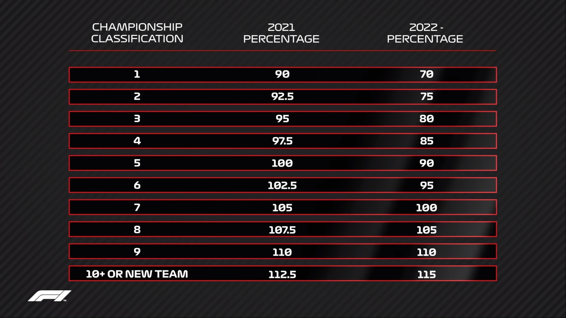 Percentage of aero development allowed for teams starting 2021Power Unit