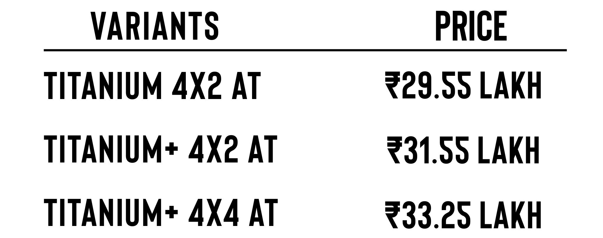 The refreshed Ford Endeavour is not revolutionary. Despite the fresh face, the bulk of the changes are under the hood. The Endeavour was already a very solid SUV with a feature list to shame most of its competitors. Here is the full price list: