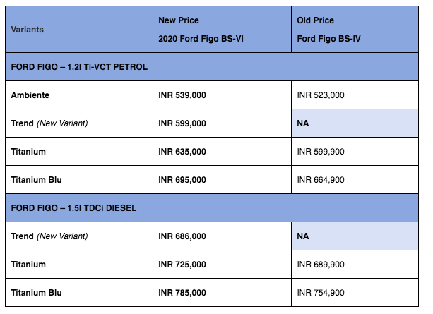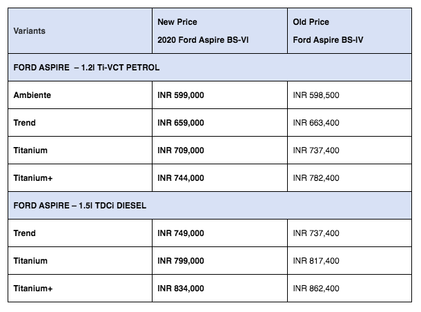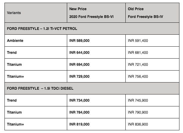 Apart from these changes the Figo and Freestyle have gotten a revision in their prices whereas the Aspires prices remain unchanged. The revised prices of the Figo starts from INR 539,000 while the Freestyle being introduced with a starting price of INR 589,000.