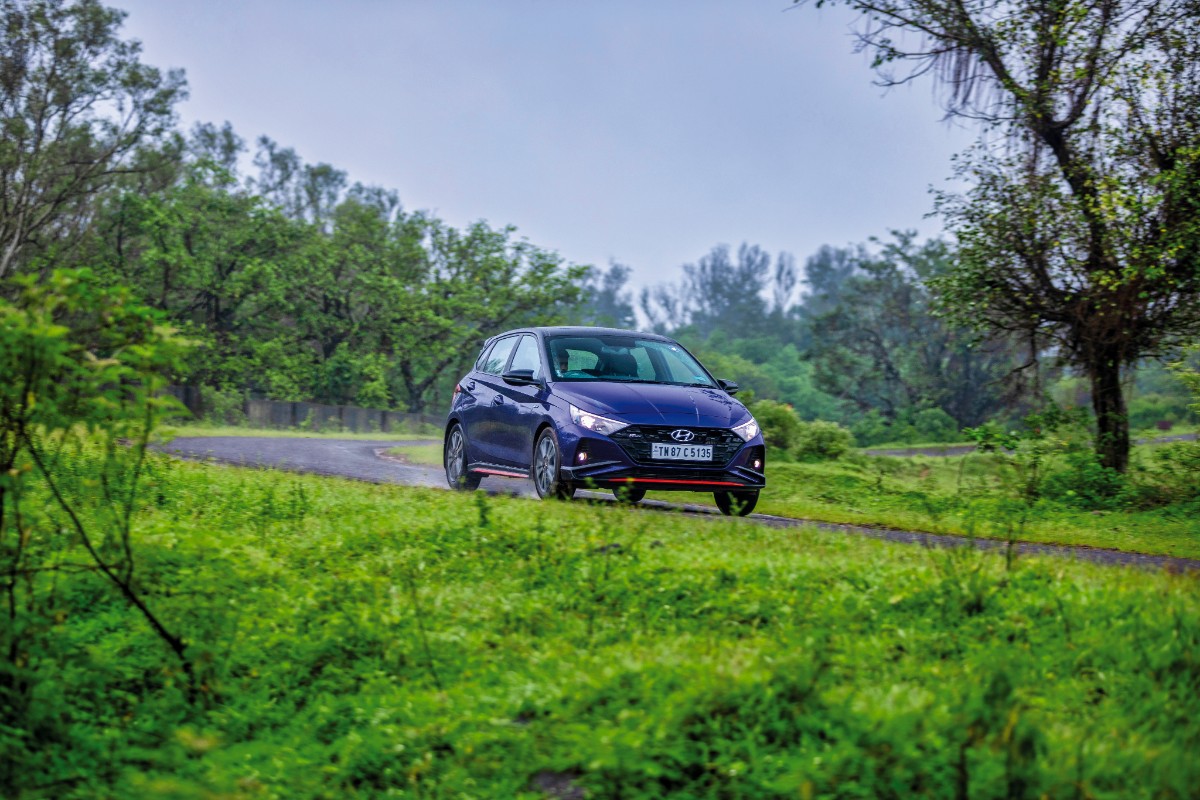 Dual-exhaust tips hint at the sporty creds of the i20 N LineThe Jawhar Road is where all the supercar owners and motor heads from Nashik come to spend their weekend mornings. It's located on the eastern side of the city and is just an hour away from Nashik, ahead of Trimbakeshwar. This is a fast and wide road with mountains on either side. And if you're a fan of the staple Nashik Misal Pav, a hearty breakfast that's best enjoyed super spicy, you'll get some very famous restaurants serving it along the way.