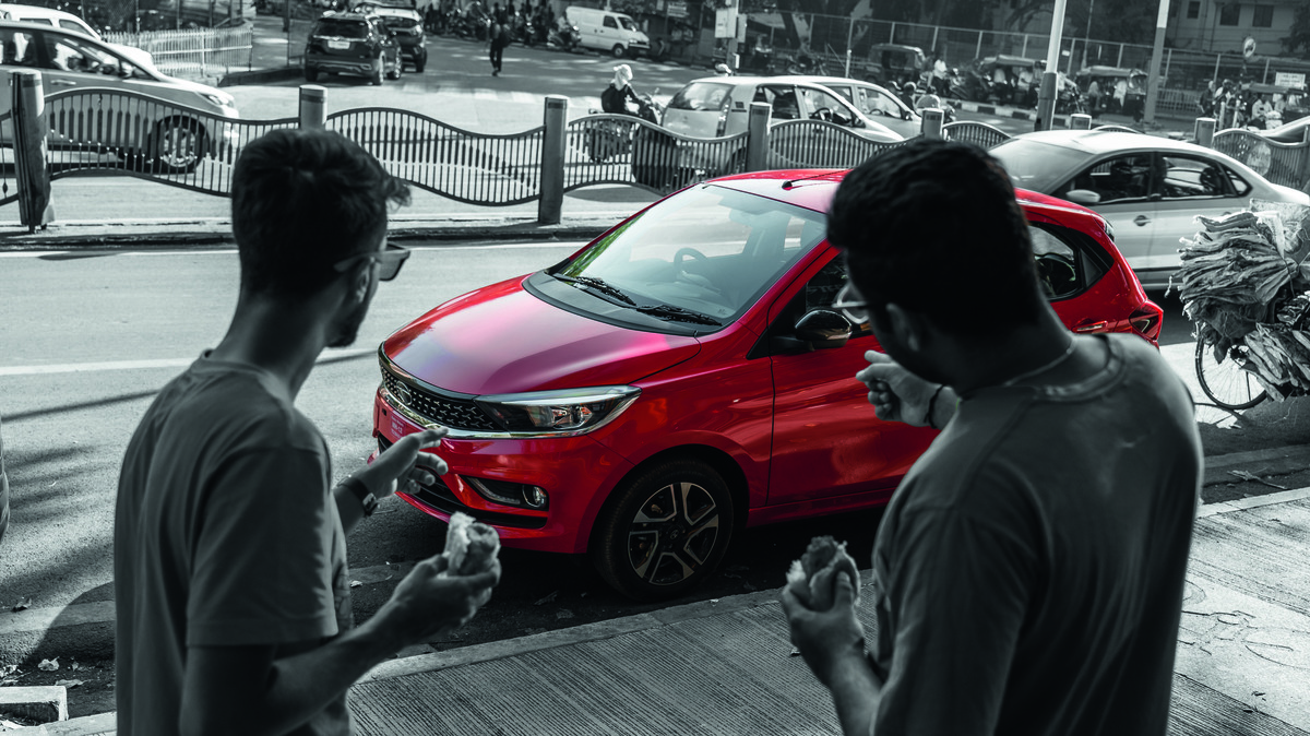 2023 Tata Tiago AMTOnce the backbone of every manufacturer that produces and sells cars in India, the hatchback segment has seen a considerable decrease in sales over the last decade due to the rise of compact SUVs and SUVs. But a hatchback still makes the most sense to stroll around town and enjoy stress-free motoring in. Well, explain that to an SUV fanatic! My friend Rohin is a huge SUV buff — he already has two of them and is looking forward to buying a third one. But what for do you ask? It’s supposed to be a gift for his mother to go grocery shopping in the chaotic city of Pune. While an SUV will surely help Rohin’s mother tower over other cars at the traffic light, it’s the last thing that she needs while looking for a parking spot. Lucky for her, I had the new Tata Tiago with me for a couple of days of testing and I hadn’t met Rohin for almost six months, so off I went to advise him why a hatchback makes more sense in the city, let alone for his mother, than a big burly SUV. “I don't remember the last time I sat in a hatchback,” said Rohin looking at the Tiago when I pulled up to pick him up. “But it is a good looking car,” he adds. And that is certainly true. The Tiago’s styling is familiar, there are over 4.75 lakh of them on the road, yet it stands out thanks to the striking Impact 2.0 design. Especially so when it wears the Flame Red shade that my test car was sporting.