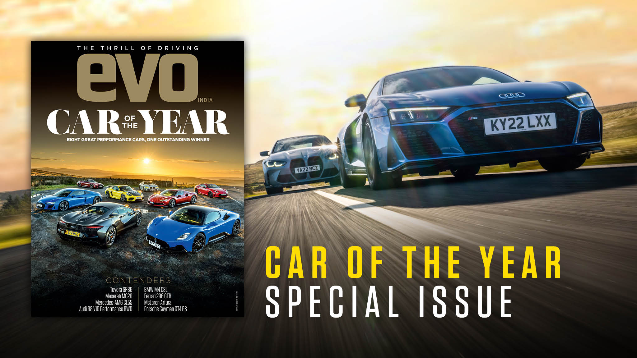 Order the January 2023 issue of the evo India magazine!evo Car of the Year is the ultimate test — with six jurors picking apart eight of the finest cars launched over the last year to decide which one gets to wear the crown for 2021. This 48-page-long feature will indulge you with some incredible visuals and the most incisive, yet descriptive writing that will transport you to those roads in Scotland, and put you right in the driver’s seat. There’s an incredible line-up of cars stretching from the relatively attainable stuff like the Toyota GR86 to exotica like the Ferrari 296 GTB. This year’s line-up has some real stellar cars including the McLaren Artura and Maserati MC20, with the final Audi R8 V10 Performance RWD making the cut. Porsche isn’t pulling punches with the 718 GT4 RS, but then neither is BMW with the M4 CSL and Mercedes with the SL 55 AMG. This is not a story you want to miss.