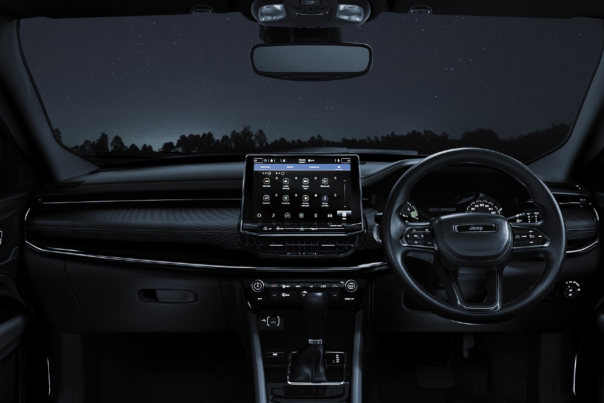 The dark theme continues on the interiors as wellIn terms of the equipment, the Night Eagle receives a 10.1-inch touchscreen infotainment system with Uconnect software, a 7-inch instrument cluster, a six-speaker sound system, automatic headlamps, and dual-zone climate control over the lower variants. Safety features such as hill-start assist, stability control, traction control, electronic parking brake, and reverse parking camera among others remain standard across the Compass lineup.
