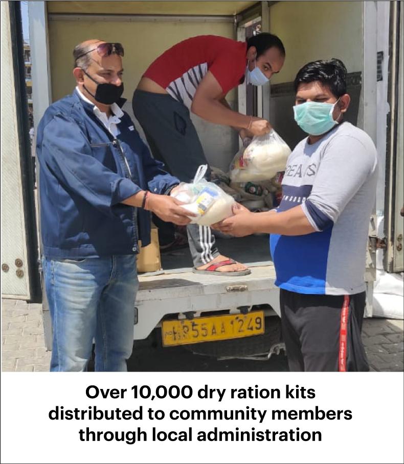 Maruti Suzuki India distributing dry ration kits to the local community.