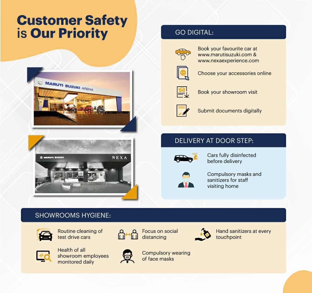 Kenichi Ayukawa, MD & CEO, Maruti Suzuki India said, “Customer satisfaction and safety is our top priority. All our dealerships have put in place steps to ensure complete safety, hygiene and sanitization of all touchpoints. I would like to assure our customers that your car buying experience with Maruti Suzuki is completely safe.”