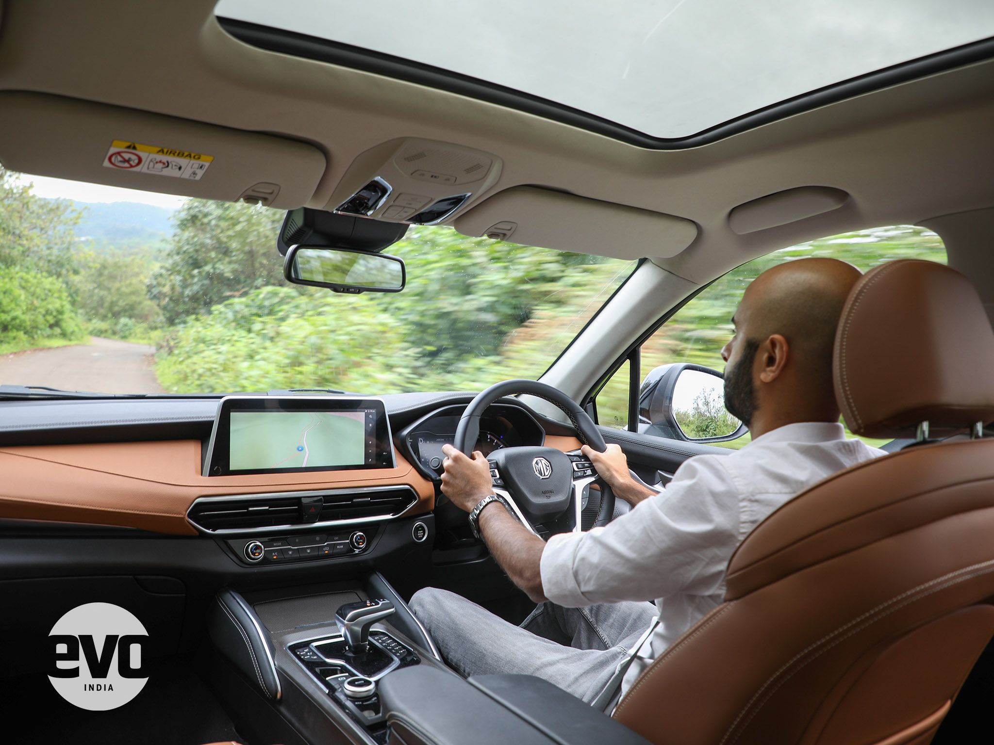 There’s plenty to like about the cabin. Quality is great and it is packed with features — the infotainment screen is connected to the internet and gets the Gaana app along with live weather and traffic updates along with a news app. We found the touchscreen to be a bit laggy but have been assured there’s an update coming to sort it out. Both front seats are heated and electrically adjustable, while the driver’s seat is also ventilated, gets a memory function and a massage function. On the seats though I must mention that they are strangely hard and stiff; we’d have preferred something more cushy. There’s three zone climate control, 64 colour ambient lighting, a 12-speaker sound system and it accepts voice commands just like the Hector.