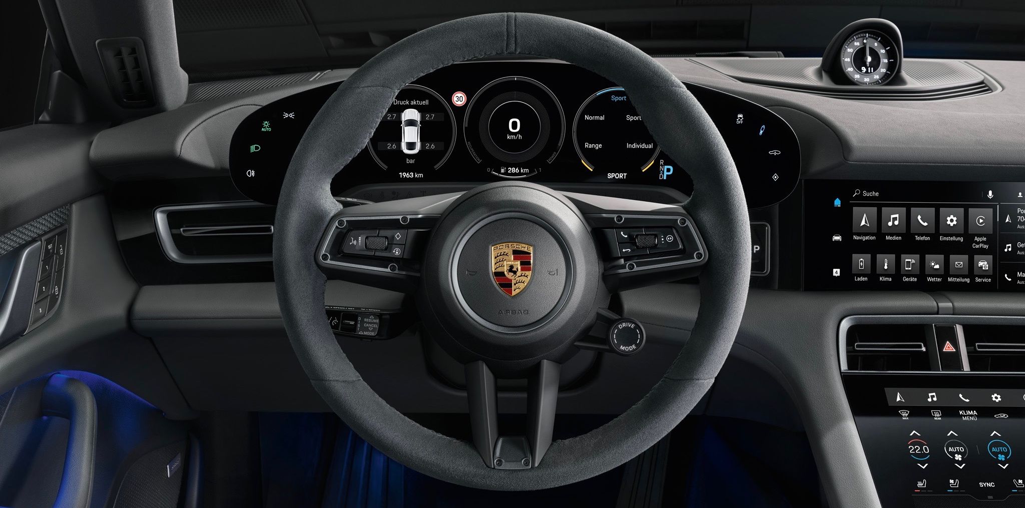 Other than that, the Taycan 4S gets all the same technology as its Turbo siblings with a plethora of screens on the inside. As standard, the Taycan 4S comes with a partial leather interior as well as front comfort seats with eight-way electrical adjustment. It also comes with the same three-chamber air suspension with adaptive dampers including electronic damper control PASM (Porsche Active Suspension Management). The Taycan gets ballistic stopping power too with 360mm discs on the front axle and 358mm on the rear axle.