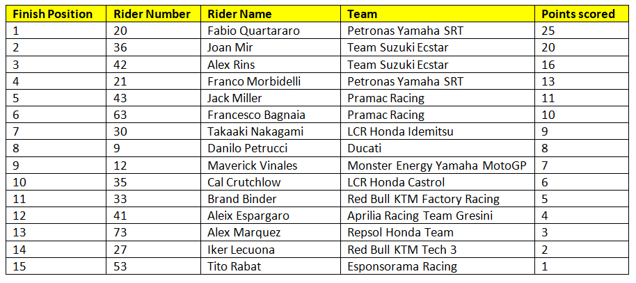 Below are the final results of race eight of the 2020 MotoGP season: