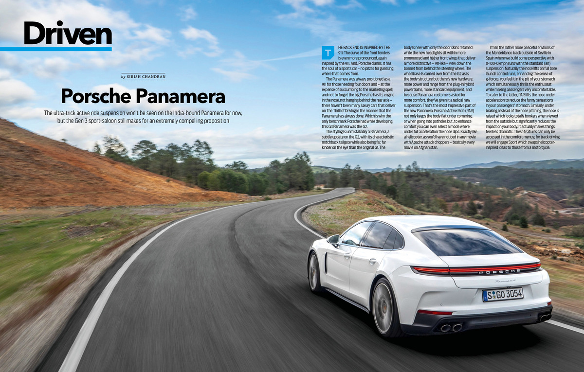 The Gen 3 Porsche Panamera has some clever tech in it including the Porsche Active Ride system. With fresh styling, updated interiors and tweaked drivetrains, we put Porsche’s family car through its paces before its India launch.