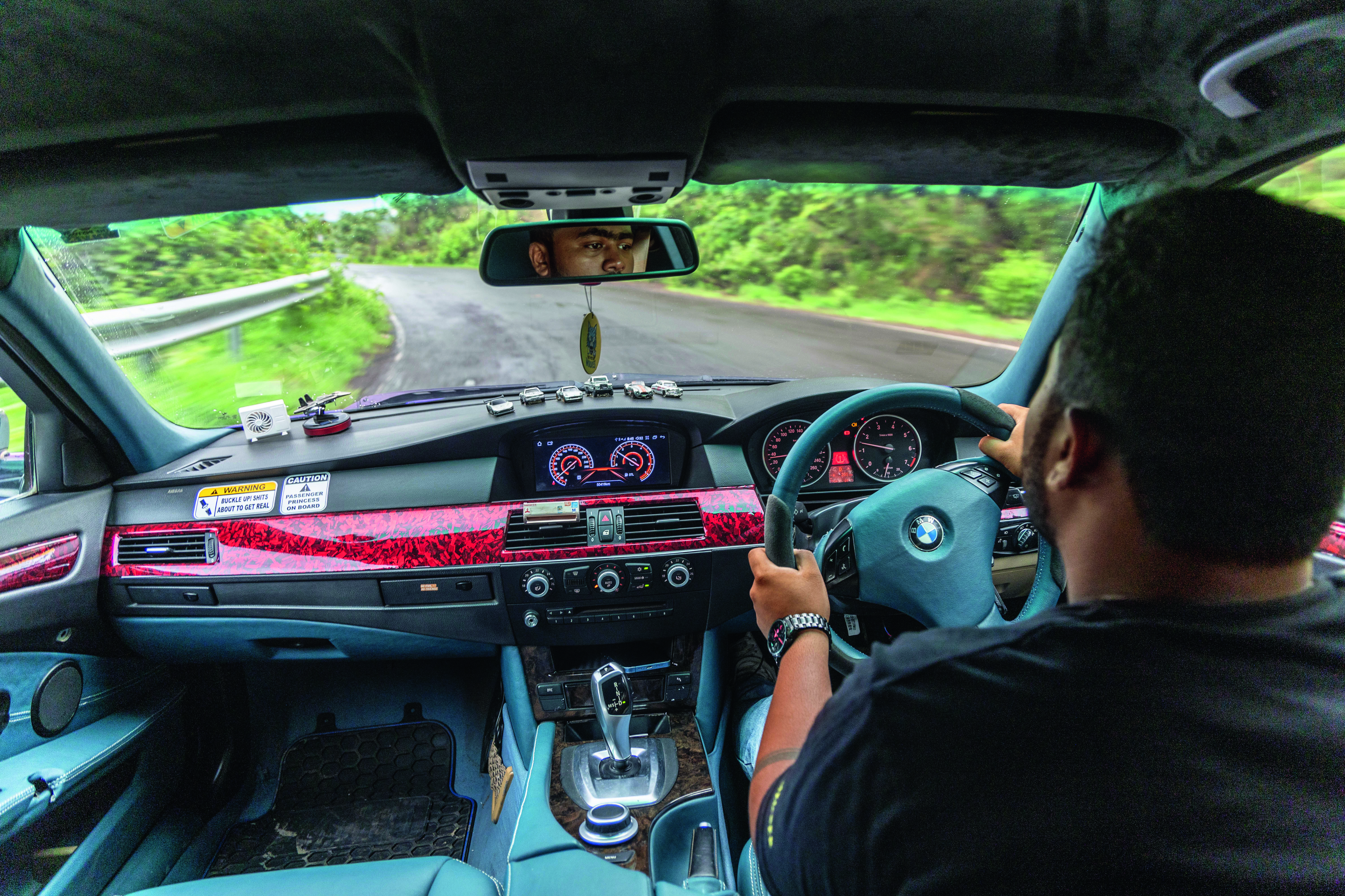 Step inside and you can see that Siddharth has lived out his childhood fantasy – scale models of six cars and a fighter jet, all glued on to the dash like it’s a kindergarten project. The trim is hydro-dipped in a red forged metallic colour and extends to the doors as well. The infotainment display has been changed to an android Hypersonic display that supports Apple CarPlay and Android Auto. It can also display the car’s vitals – speed and tacho – and that makes it feel a lot more integrated to the machine. Music is blasted into the cabin via JBL speakers and an Earthquake subwoofer – a biker on a red light standing next to this car will definitely feel an earthquake is here. The E60 generation’s seats were notoriously uncomfortable, but not in this one. It gets custom blue seats with extra foam to ensure plenty of comfort. The seats are so soft now, I could take a nap in it even if we’re doing high speed runs.